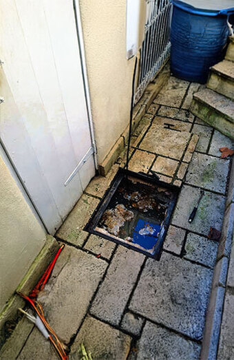 Professional clearing of blocked overflow relief gullies connected to stormwater lines that aren’t draining during rainfall, reducing flooding risk.